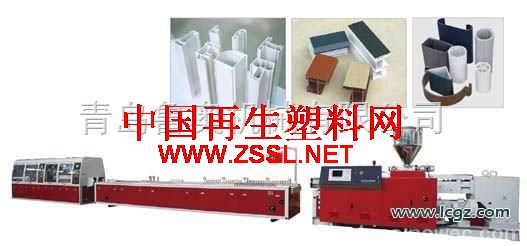 PVC型材生产线简介 该机组是生产PVC塑料异型型材的专业的生产设备,主要生产门窗系列异型材、板材、片材、微发泡异型材、微发泡装饰板材。我公司引进吸收国外技术而研制的大型塑料门窗异型材生产线,配套以锥形双螺杆挤出机,具有自动化程度高,工作性能平稳,产量大,效率高等优点。 该机组有锥形双螺杆挤出机、真空定型台、牵引机、切割机、贴膜机、翻料架等组成。主机采用进流变频或直流调速拖动,温控仪表采用日本RKC 产品。辅机真空泵和牵引电机均采用优质产品,维护简便,更换螺杆机筒及模具后,可以直接挤出仿真木发泡异型材,效果比单螺杆更佳。 适用物料:PE、PP+木粉,PVC+木粉。 可生产托盘,包装箱板,装饰板材等。 PVC型材生产线(本生产线吸收国际最新技术,采用高效锥形双螺杆挤出、真空定型工艺,PVC门窗型材、窗台板、外墙挂板、装饰板、多孔穿线管等型材的挤出;广泛应用于PVC塑钢门窗、建筑、装饰等领域